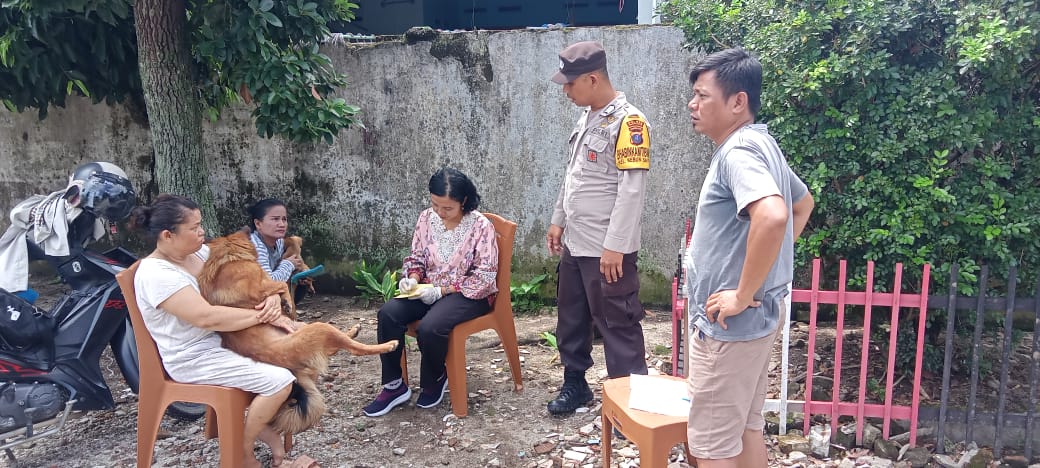 JP. PEMATANG SIANTAR-SUMATERA UTARA. Polsek Sianțar Timur melalui Bhabinkamtibmas Kelurahan Kebun Sayur BRIPKA Manoa Sitanggang pendampingan pelaksanaan Vaksinasi Rabies hewan peliharaan warga di Jl. Sawi Kelurahan Kebun Sayur Kecamatan Siantar Timur Kota Pematangsiantar pada hari Jumat 4 Oktober 2024 siang Pukul : 11.00 WIB.