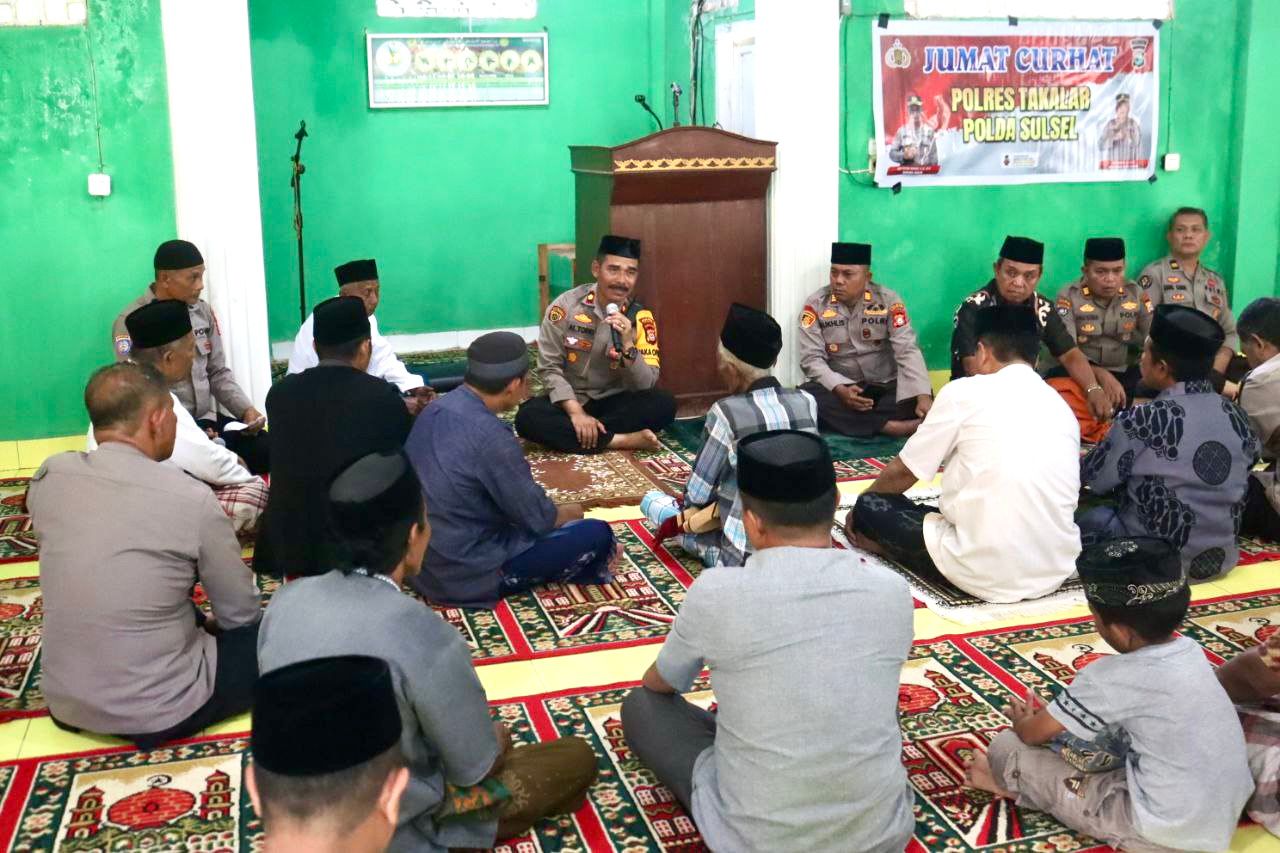 Wakapolres Taklar Kompol Alauddin Torki, S.Sos., M.Si memimpin kegiatan rutin Jumat Curhat yang diadakan di Masjid Ar Rahman, Desa Bontomarannu, Kecamatan Galsel, Kabupaten Takalar, Jumat 27 Sepetember 2024. Acara ini merupakan bagian dari program kepolisian untuk mempererat hubungan dengan masyarakat sekaligus mendengarkan langsung keluhan, saran, dan aspirasi warga setempat.