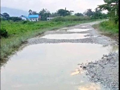 “Sangat di sayangkan jalannya hampir di tutupi rumput dan sebagian jalannya rusak berat dari arah selatan saat ini” urainya.