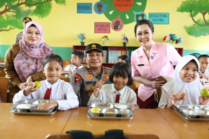 Bukan cuma menjaga kamtibmas, Kapolda Riau kini juga ikut jaga asupan gizi anak-anak sekolah. (*)