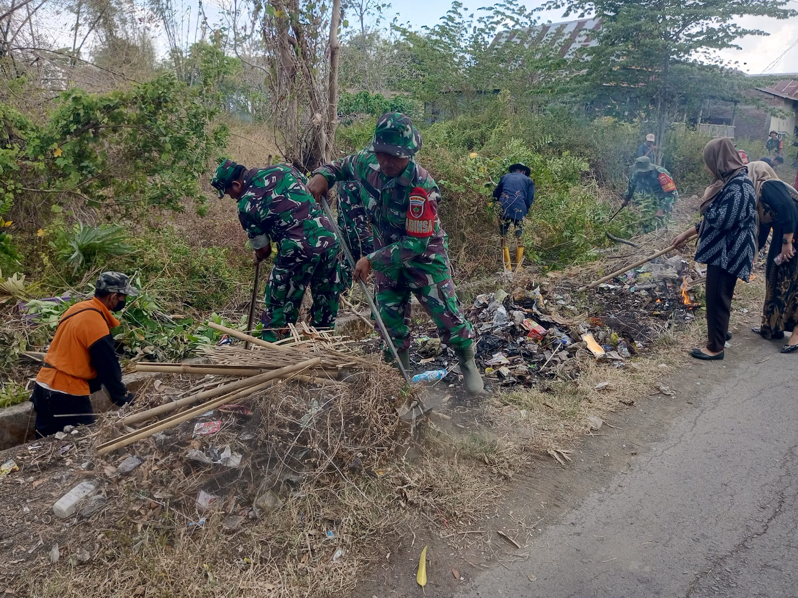 Personel Koramil 1426-05/Marbo bersama warga nampak kompak bahu membahu saling bekerjasama membersihkan saluran air dan rumput liar yang sudah rimbun dan sangat menggangu pemandangan.